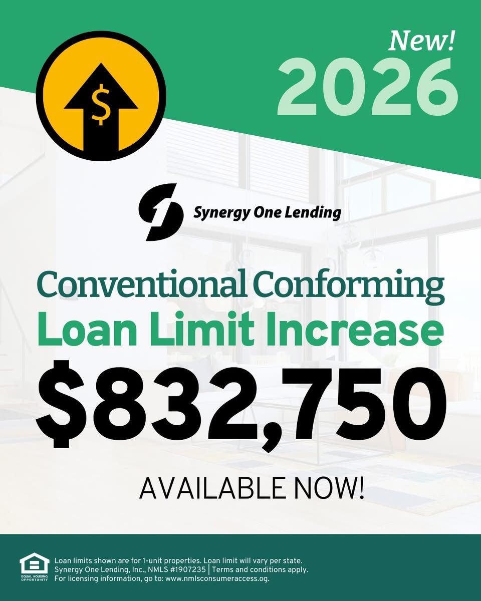 The conventional home loan amount has increased to $832,750 and is available right now - no waiting period.